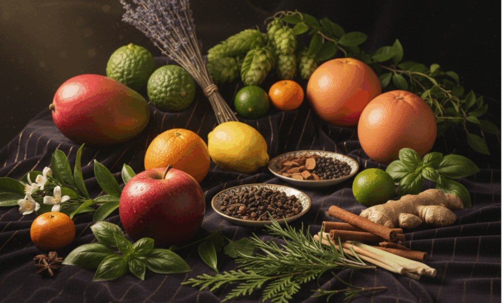 TERPEN RITUALSの製品は、古来より植物が持つ繊細な芳香成分、テルペンを科学的に調和させることで生まれます。このページでは、製品の世界観を支える8つの鍵となる成分と、その自然界における役割をご紹介します。あなたの心地よい時間を設計する、香りの知恵を深く探求してください。